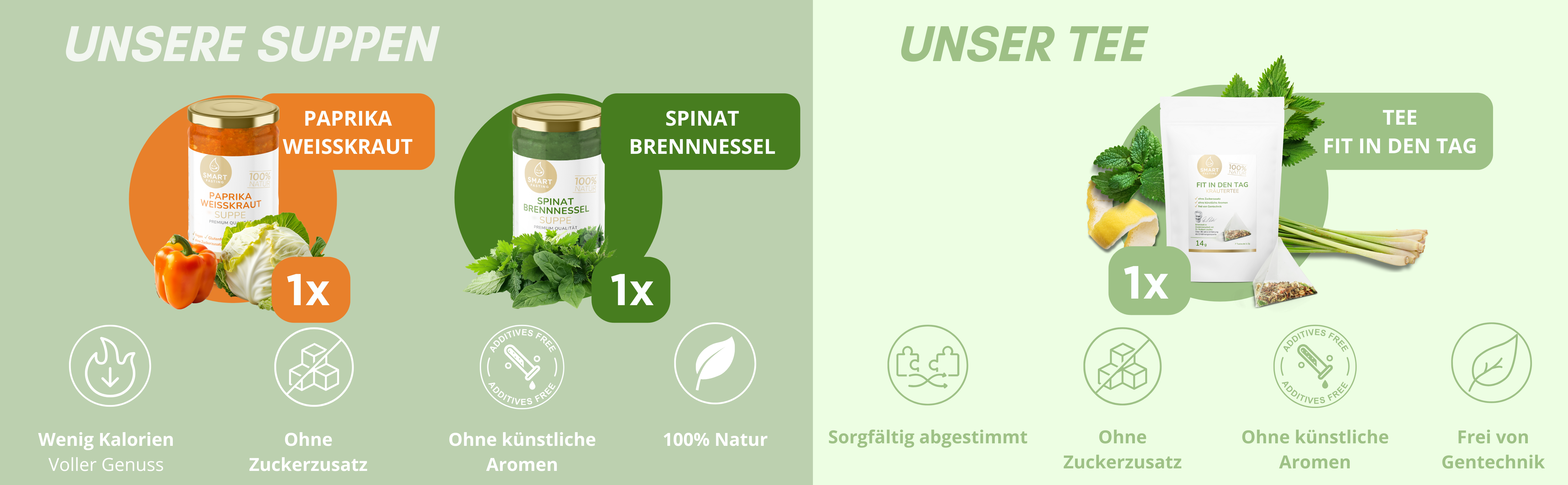 Ergänzendes Ernährungskonzept mit pflanzlichen Suppen und Tees