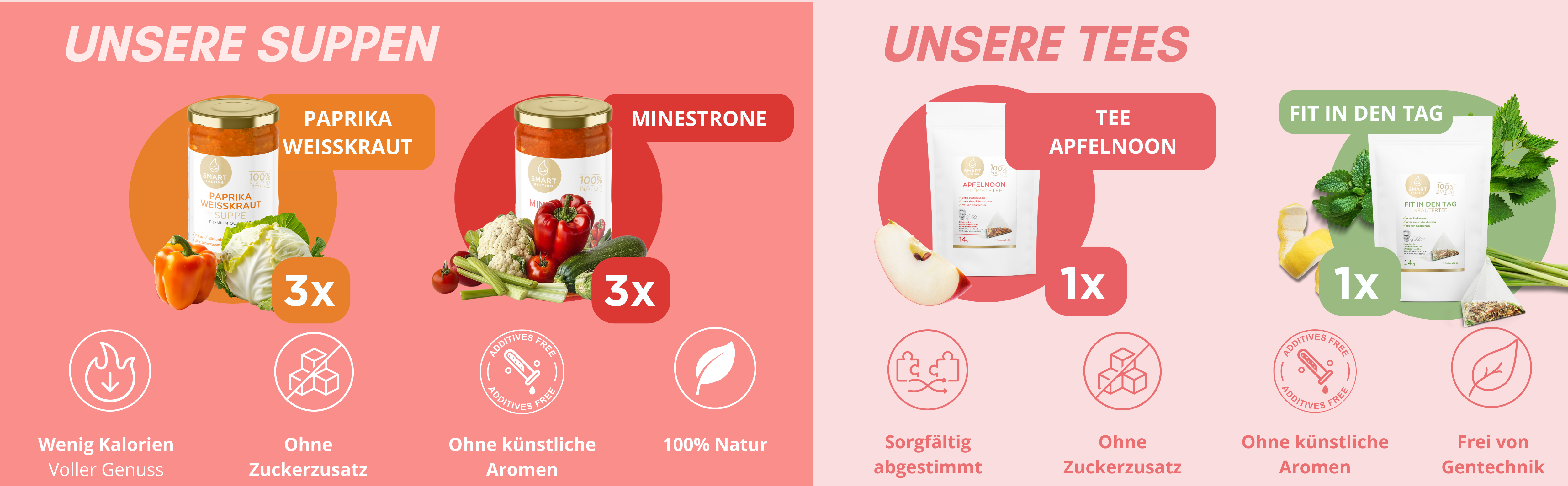 Ergänzendes Ernährungskonzept mit pflanzlichen Suppen und Tees