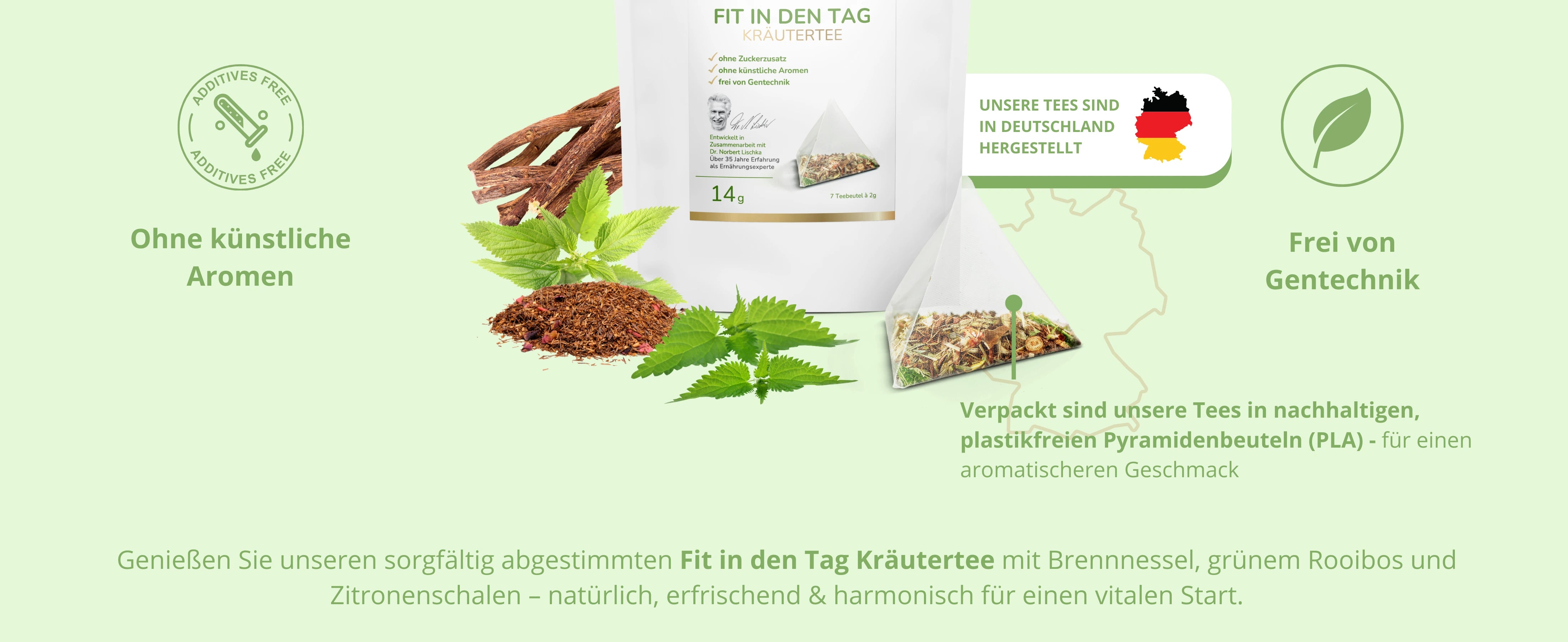 Seit Jahrhunderten werden Kräutertees traditionell zur Unterstützung eines gesunden Lebensstils und während des Fastens verwendet. Der Fit in den Tag Tee ist die perfekte Wahl für alle, die ihren Körper auf natürliche Weise unterstützen und mit sanften Kräutern erfrischt in den Tag starten möchten.